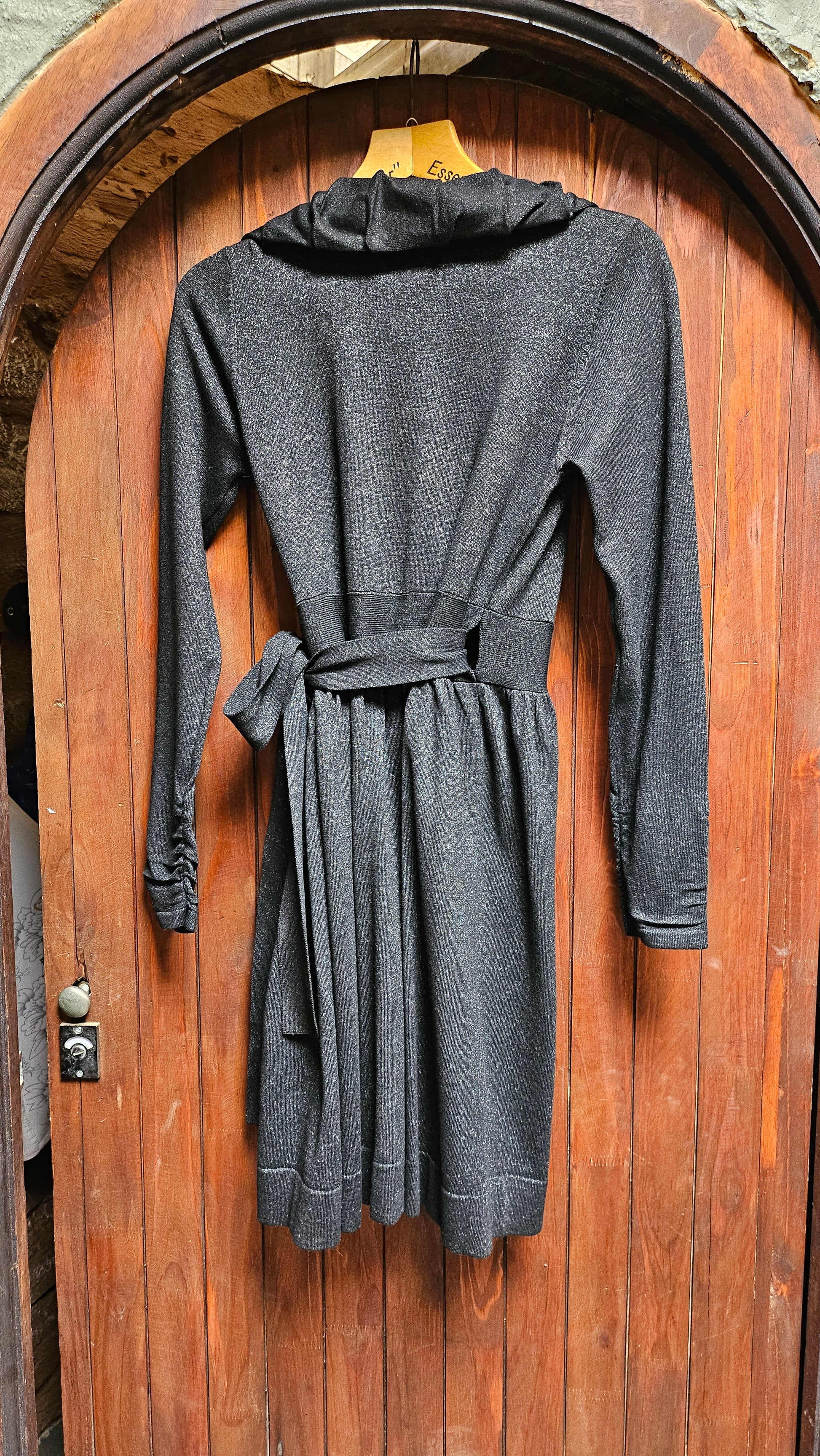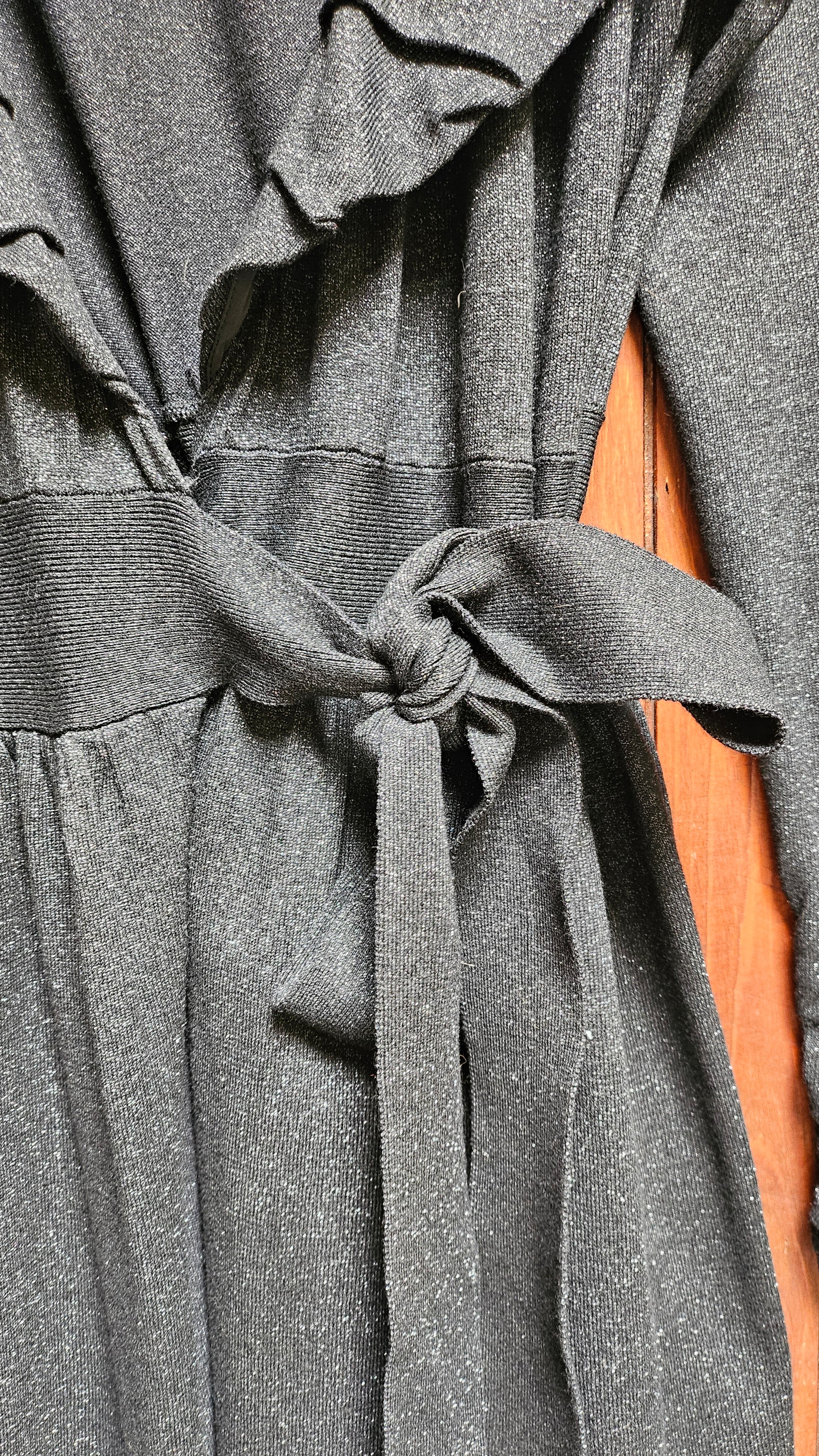 Silver and Black wrap around dress with long sleeves